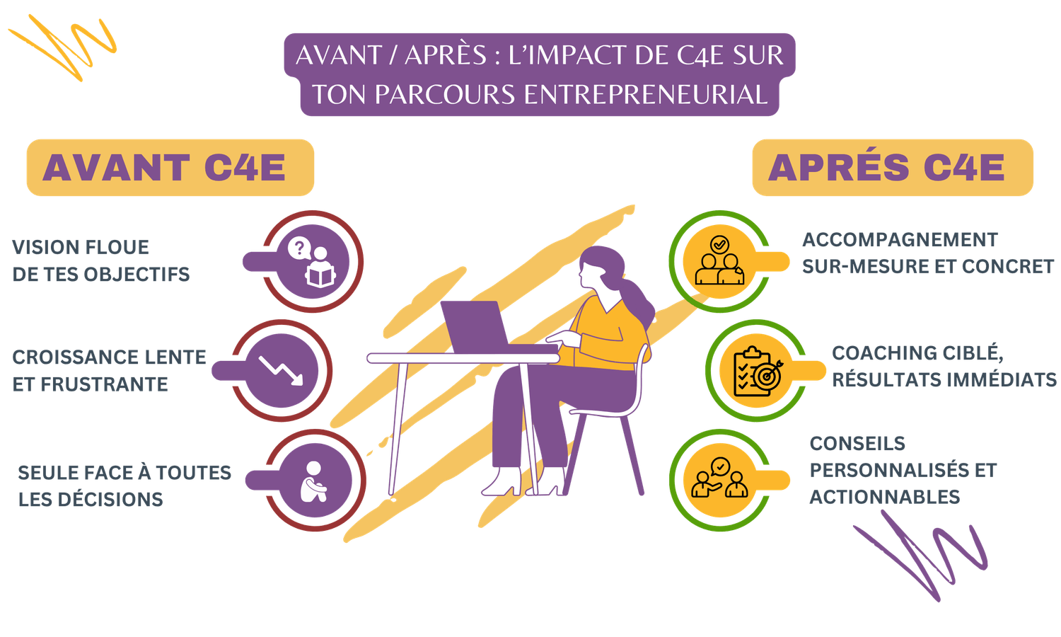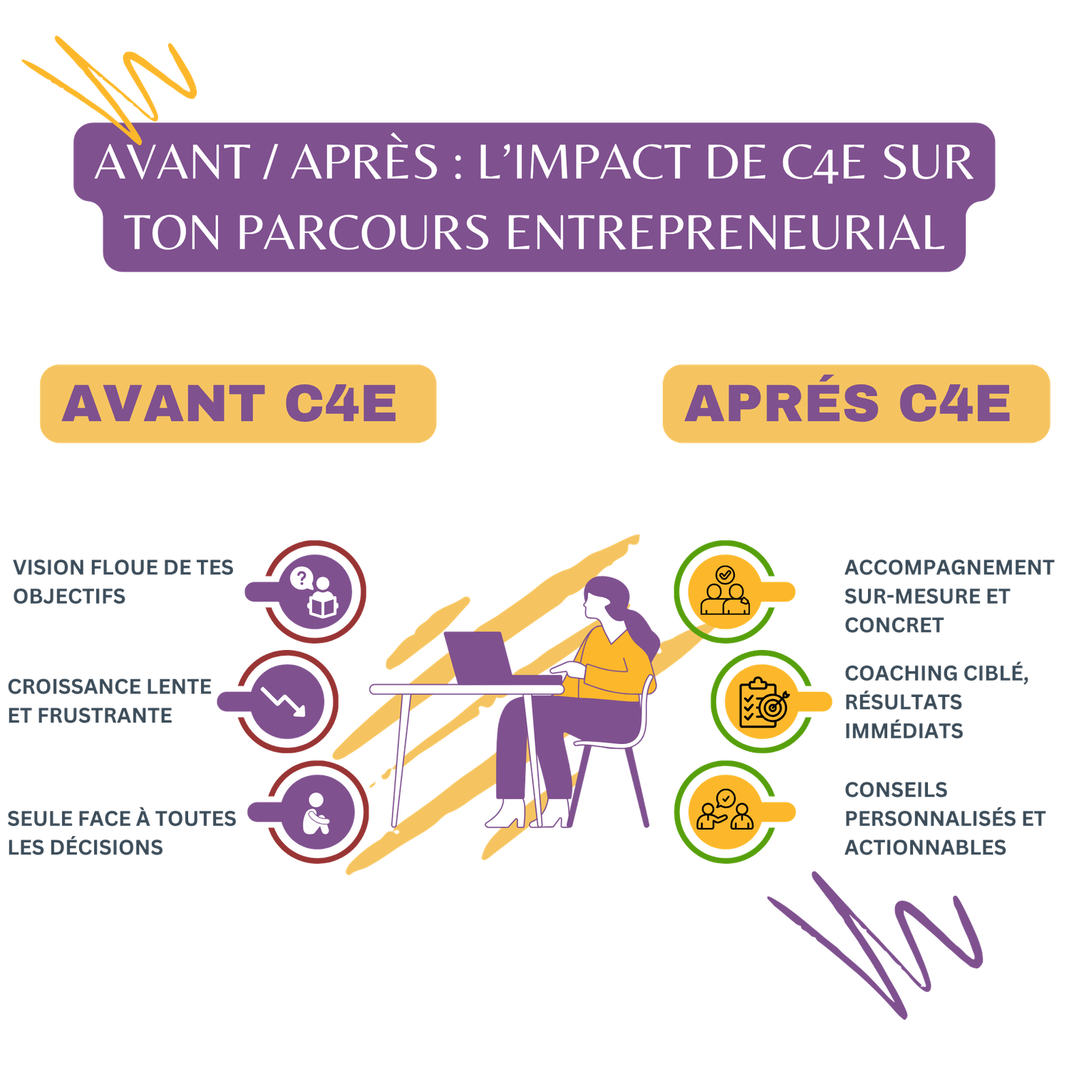 Avec C4E, tu gagnes du temps en accédant directement aux méthodes qui fonctionnent, pour avancer plus vite et faire grandir ton business efficacement.